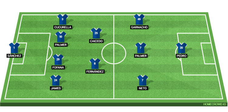 Предсказанный стартовый состав "Челси": Санчес; Джеймс, Фофана, Чалоба, Кукурелла; Фернандес, Кайседо; Нето, Палмер, Гарначо; Жоао Педро
