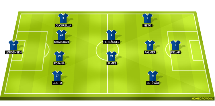 Предполагаемый стартовый состав «Челси»: Йоргенсен; Густо, Фофана, Чалоба, Кукурелла; Джеймс, Фернандес; Эстеван, Палмер, Нету; Делап