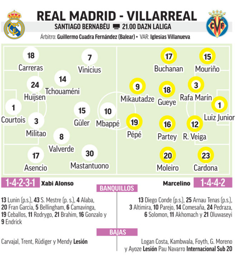 Что касается "Вильярреала", то клуб также планирует изменения после своих успехов в Лиге чемпионов на неделе. Луис Жуниор вернется в стартовый состав, в то время как Арнау Тенас вернется на скамейку запасных. Есть шанс, что с первых минут выйдут Серги Кардона, Томас Парти и Альберто Молейро.